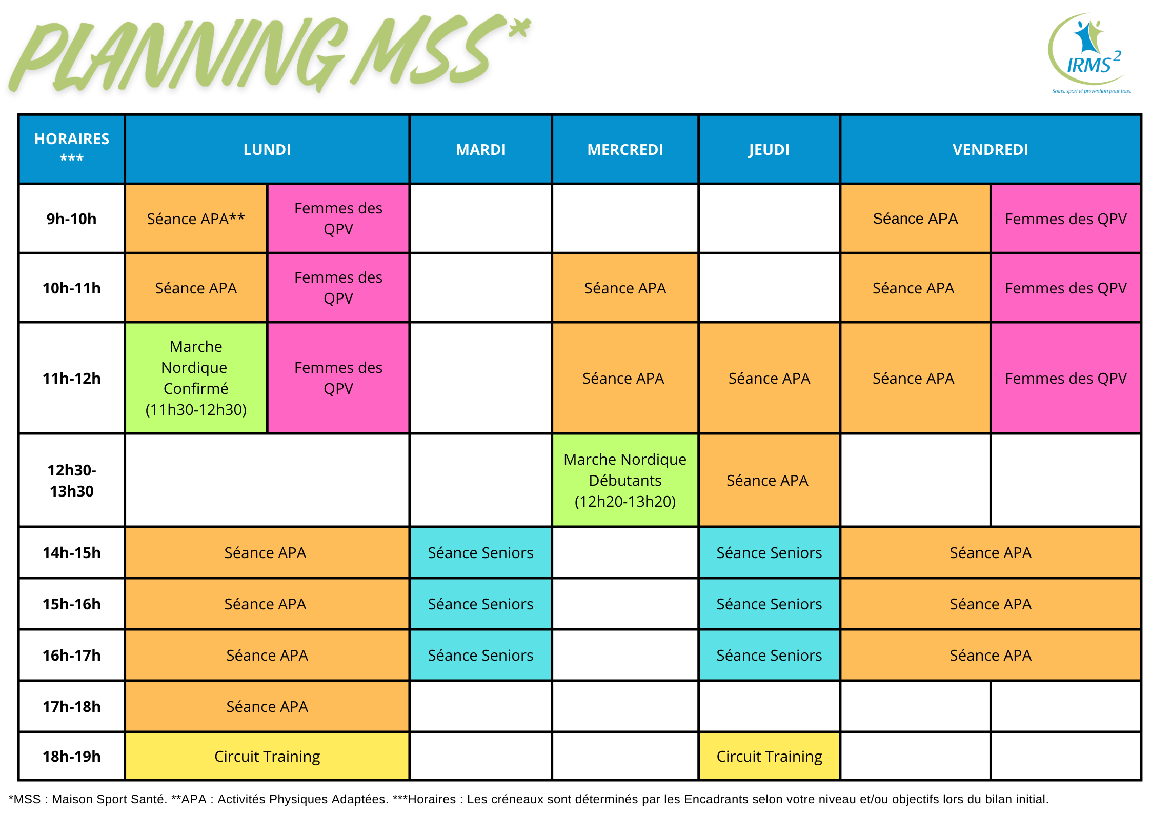 Les horaires sont déterminés selon votre niveau par l’enseignant APA en charge de votre bilan.